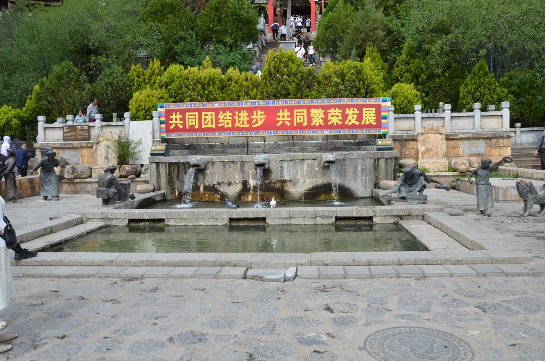 独克宗古城的整个布局以四方街为主轴,划分为东南西北四个方向的片区,而每个片区通往不同的地方,地形似盛开的八瓣莲花,其间3街(北门街、金龙街、仓房街)33个巷子交错纵横,北边去往松赞林寺朝拜的路叫“贡巴朗”,东面通往五凤山敬山的路叫“日达朗”,往南部的“达垄朗”路走可直通达垄坝子,西方的“措朗”则是前往百鸡寺焚香的路。还有许多错落有致的街巷大多以藏语取名:去古井挑水的路叫“赤朗”、去水磨房的路叫“赤古朗”等。龟山公园东麓脚下两眼泉水滚滚而出流进古井,史称“日月双泉”,曾经维系了整个古城人的用水,是古城人民赖以生存的甘露。