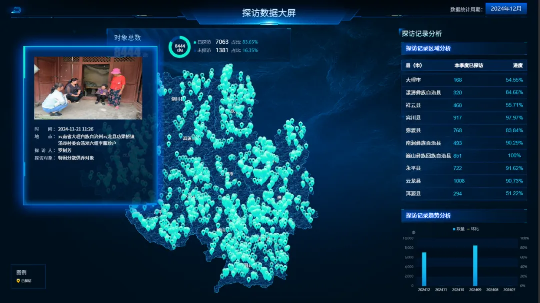 大理州积极推动服务类社会救助发展,利用信息化手段辅助日常工作,高效便捷推进分散供养特困人员探访工作,进一步增强困难群众的获得感、幸福感和安全感。