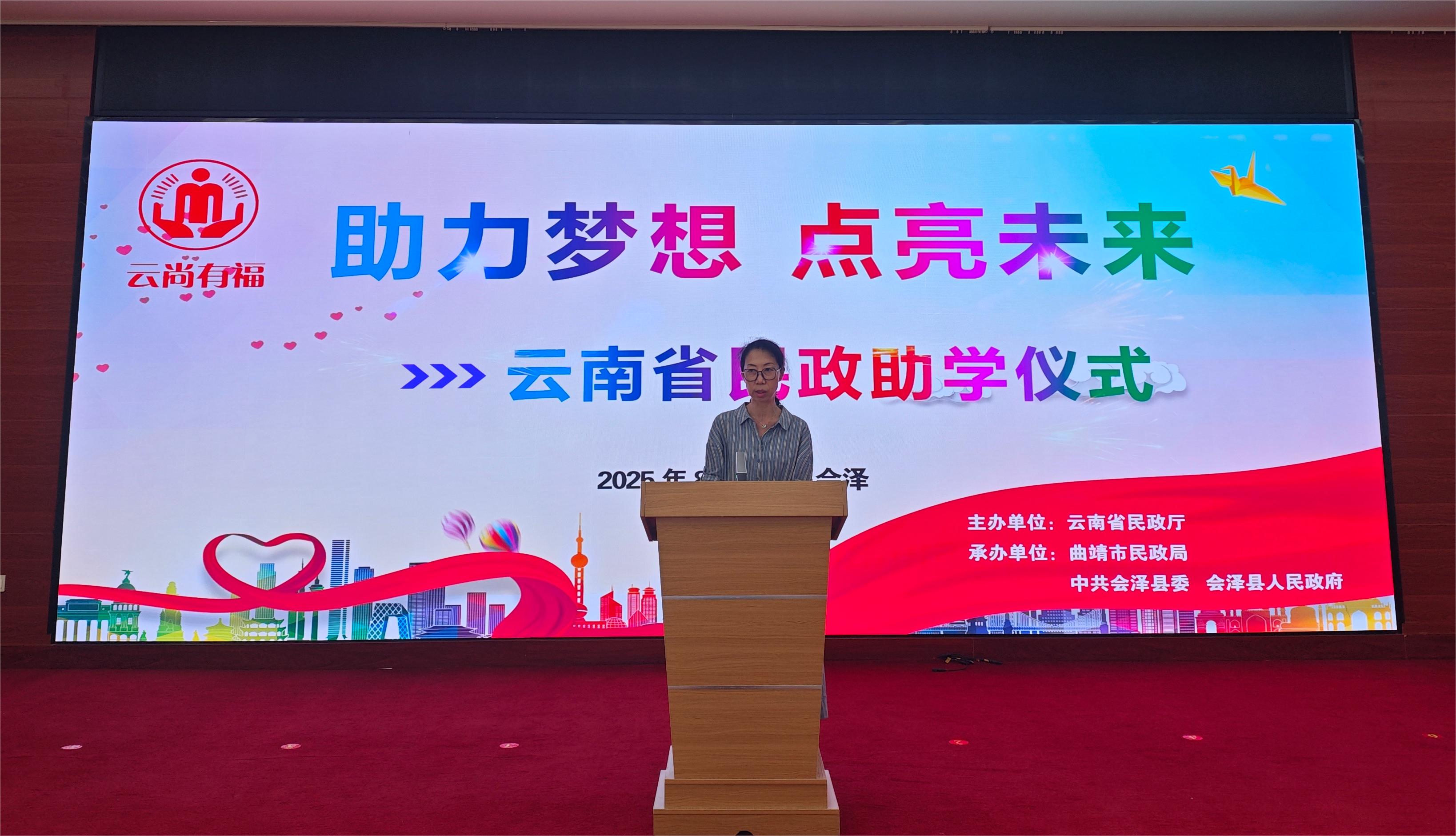 省民政厅有关处室(单位)、曲靖市民政局和会泽县民政局的有关负责同志,以及曲靖市政府和会泽县委、县政府有关领导参加助学仪式。