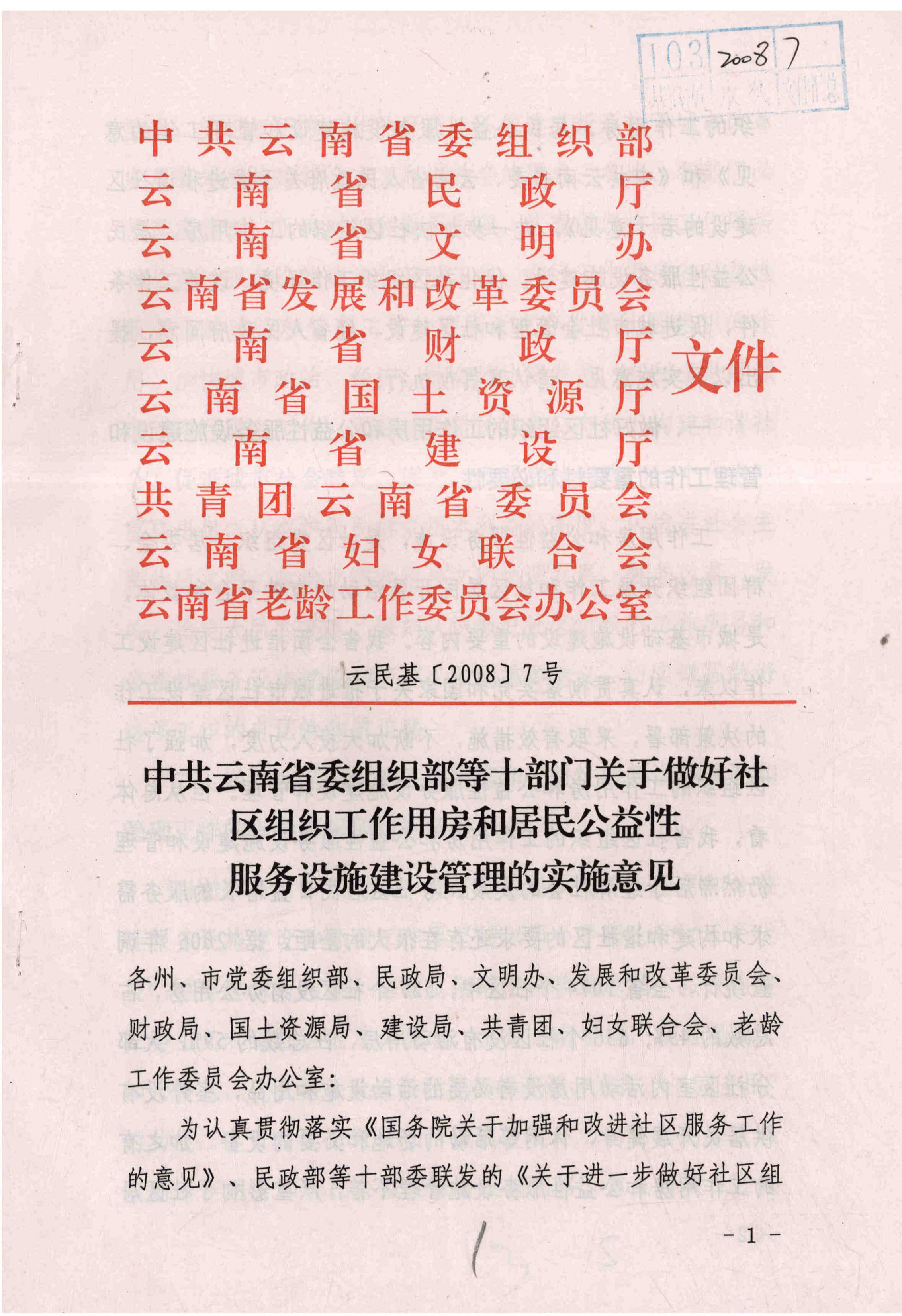中共云南省委组织部等十部门关于做好社区组织工作用房和居民公益性服务设施建设管理的实施意见