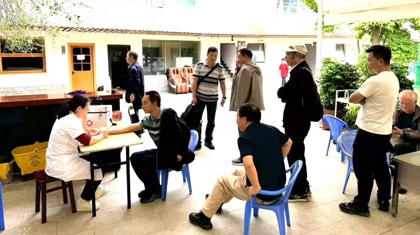配置包含常用药品、药具的流动药箱,随支部活动携带。适时安排医护人员伴随保障,提供血压、血糖和体温检测等基础体检服务,结合检查结果给予个性化健康建议;注重突发情况应急处理,为后续专业救治争取时间;针对慢性疾病患者,详解用药规范与注意事项,并发放健康宣传材料。此外,提供药品代配、就医协助等便民服务。