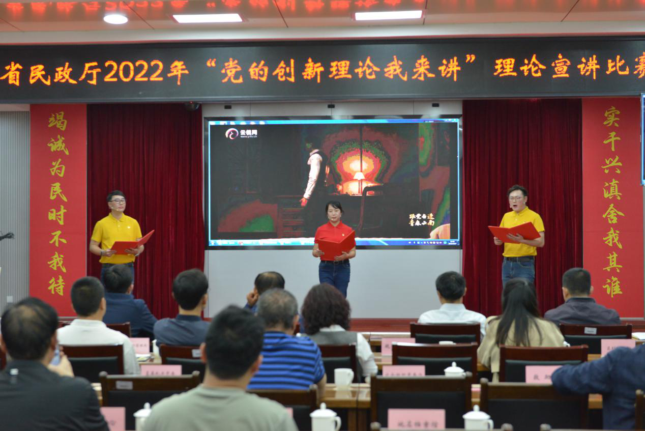 5月13日,省民政厅举办“砥砺奋进新征程 喜迎党的二十大——党的创新理论我来讲”理论宣讲比赛,厅机关、直属事业单位、厅管社会组织各党组织共24个作品、34名选手参赛。